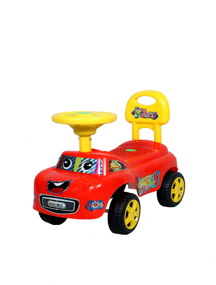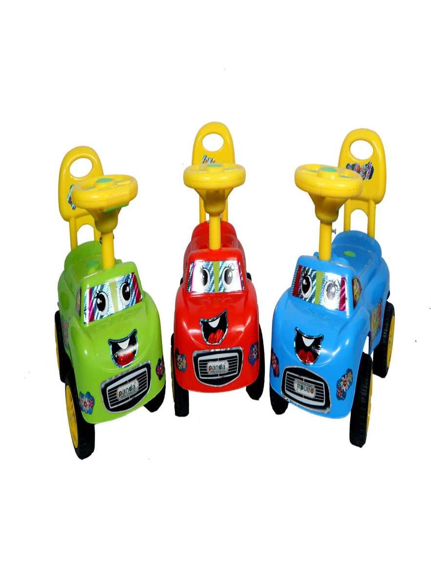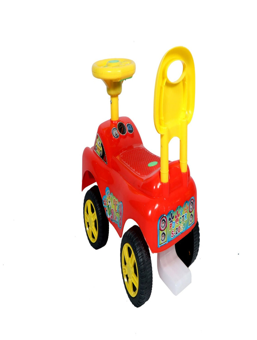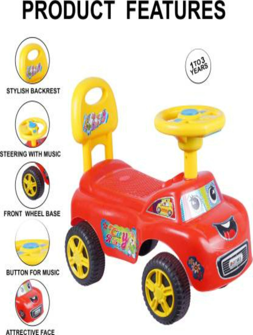 It helps your baby to develop gross motor skills in the most fun way This baby ride-on features a scooter with a multi-color headlight, horn and musical tunes, which keeps the baby indulged in active Play Under seat utility storage box allows baby to keep toys Four big and wide wheels add to the safety and comfort of the child It has a spacious seat with a safety backrest for better protection