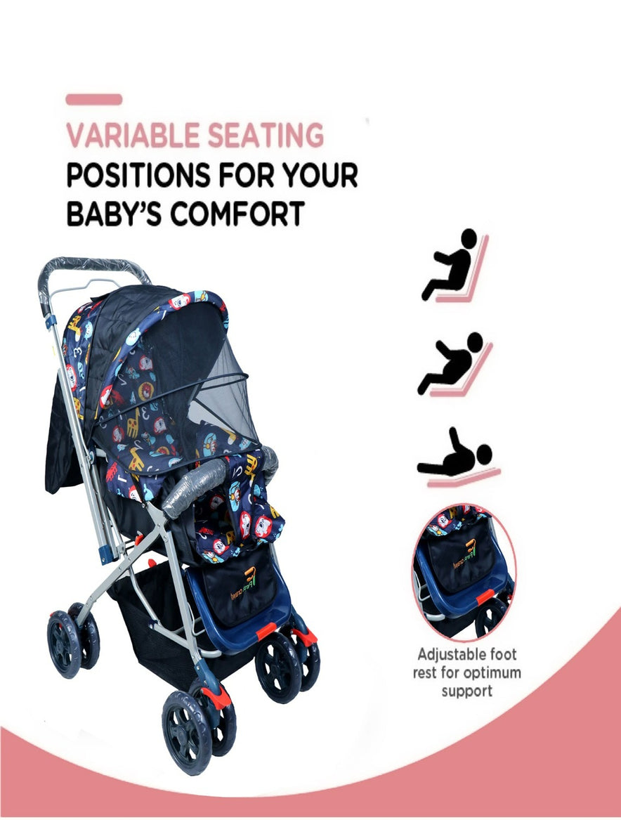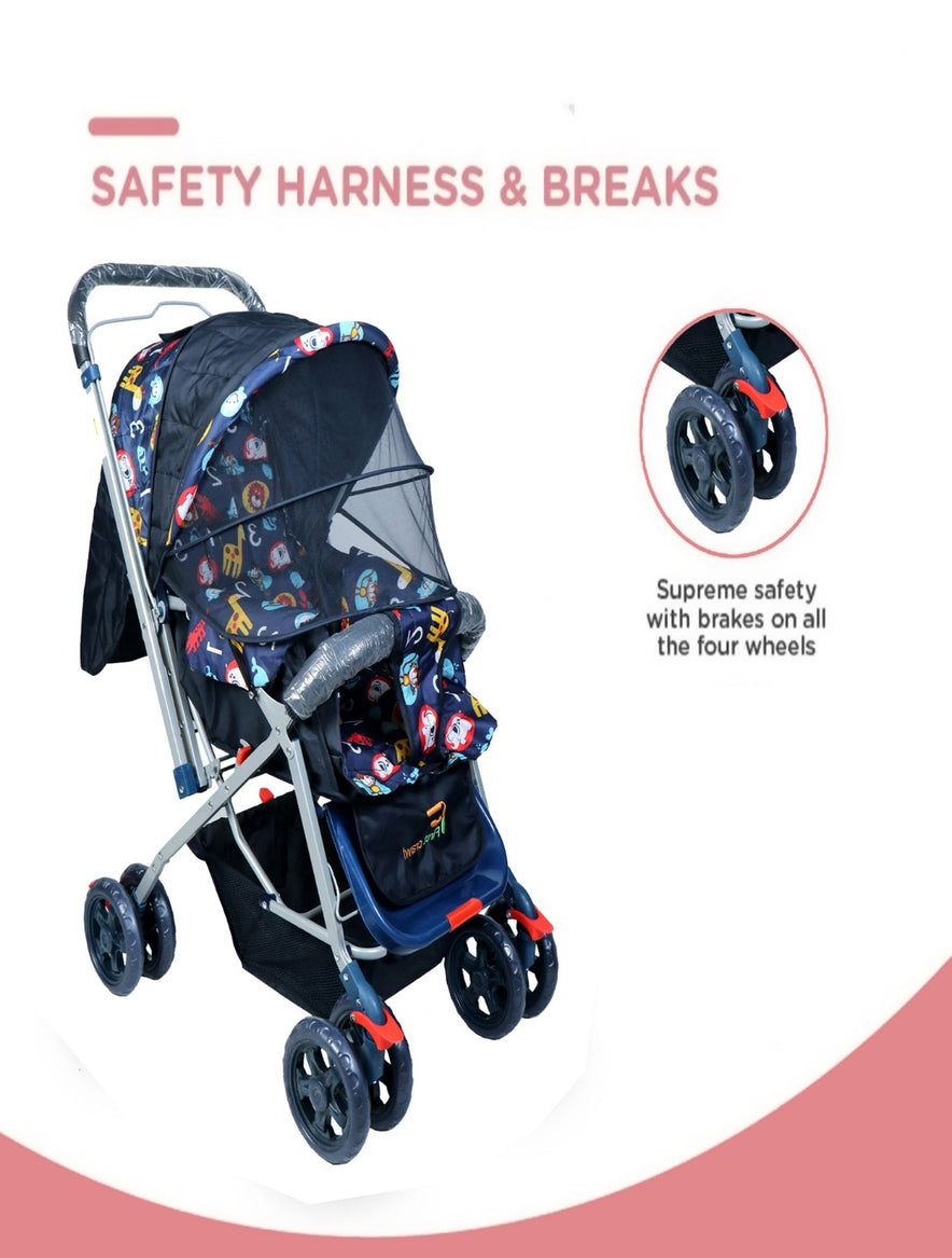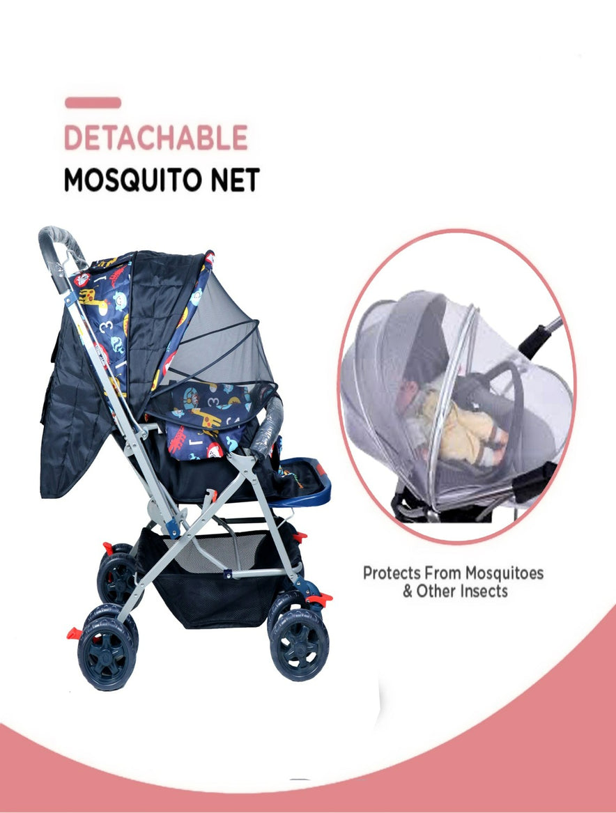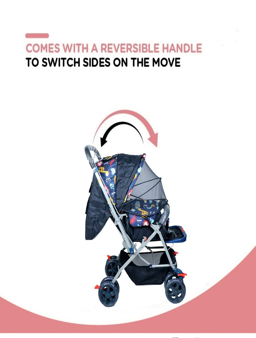 FIRSTCRAWL BABY STROLLER WITH MOSQUITO NET & REVERSIBLE HANDLE - NAVY BLUE