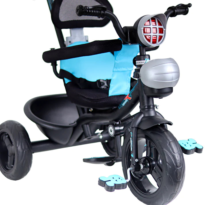 The Luusa R9 Power Black Edition Tricycle for kids is the ultimate blend of fun, safety, and convenience for your child's adventures. This feature-packed tricycle comes equipped with an array of functions designed to ensure both your child's joy and your peace of mind.