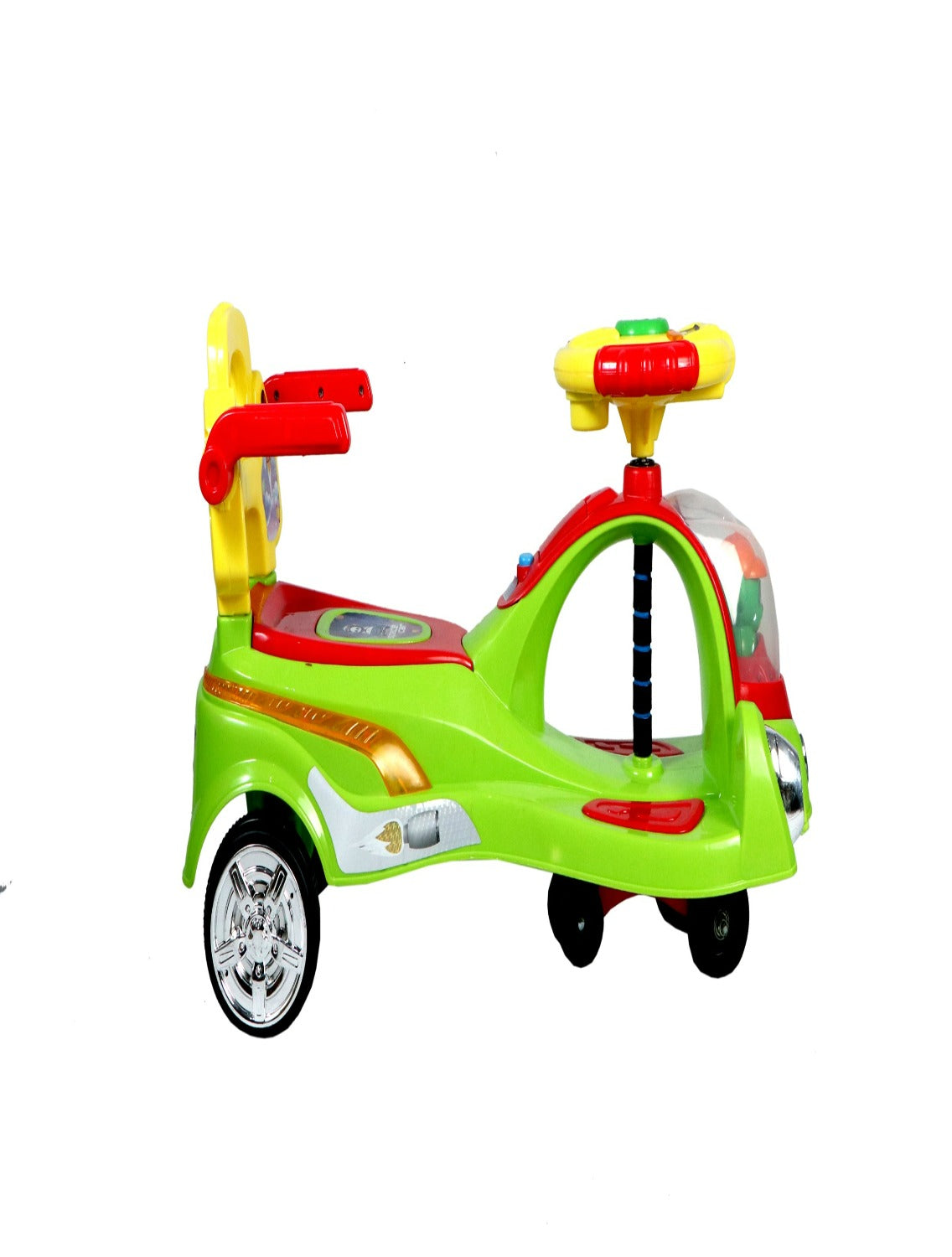 - Ride On Magic Car: This Ride on Magic Swing Car come with stylish look, effortless operation with no gears, PP wheels, Steering Wheels, Music and Led Strips, in addition to the thrill of driving this ride on toy car, your child will be able to develop and refine gross motor skills like balancing, coordination, and steering! It also encourages kids to be active and independent