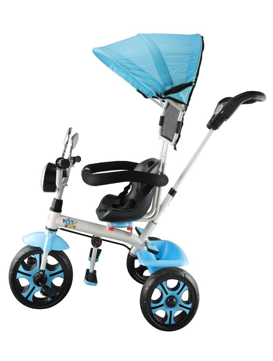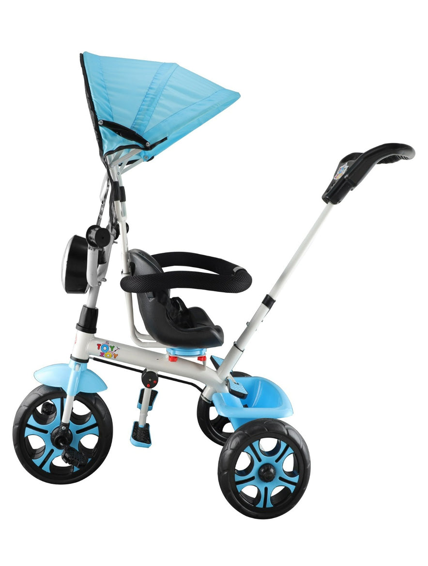 TOYZOY is a brand whose mission is to help parents and children discover the world together, providing products that combine innovative solutions and best quality. We create with passion, our mission to provide happiness and best quality for Kids, TOYZOY tricycle is designed for children aged 1.5 Years to 5 Years. With the possible product configurations it can be easily adapted to the age and height of the child. It has a mechanism connecting the parent handle with the child's handlebars, allowing the parent to keep full control over the tricycle, if necessary, BASKET - You can Load the Trike basket with favorite toys or enjoy watching your toddler fill it with treasures from the outdoors, EASY - It is available to anyone through ease of use, attractive price and prompt delivery, SMART - they combine the best features, high quality and modern design. Children's safety is our priority, which is why our products meet all international safety requirements. We take care of every detail, and children inspire us as a source of inexhaustible ingenuity and determination to explore new opportunities, Thanks to the folding footrest and the ability to place the seat forward or rear facing, the tricycle can also be used as a stroller, Easy Clip Assembly - Easy To Assemble and Easy To Carry Anywhere, Puncture Proof Tyres, Adjustable Seat, Soft Grip Handle, Easy Use For Fun, Box Contains Tricycle; Bell; Practical bag, Basket, Cup Holder.